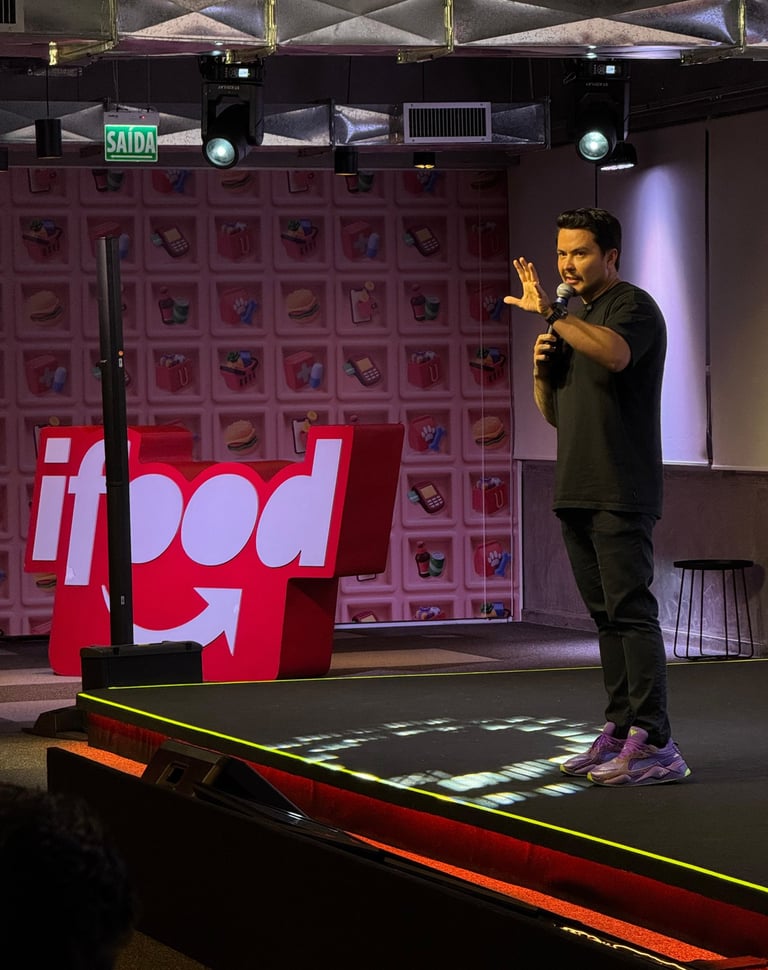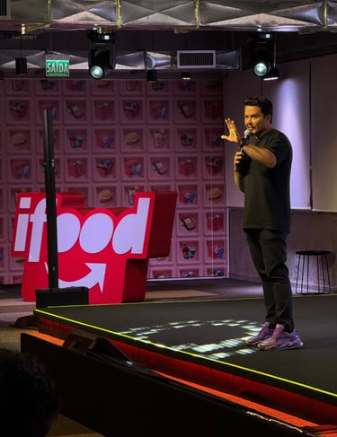 Ti Ferrara - Estrategista de Marketing para vendas no digital palestrando na sede do IFOOD sobre FARMA.